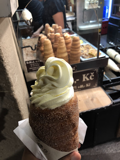 The trdelnik was not fresh, having been picked from a pile sitting out in the back instead of one of the fresh ones being roasted in the front to lure you in. The pastry itself almost seemed a little stale, being hard and not as soft as I would like, while also only having the coating on the outside and not the inside. The inside tasted like plain dough which isn’t inherently bad, but could’ve been better (it might be that all places only cost the outside). The soft serve ice cream was indeed a ton. The entire cone from the bottom to a good inch bast the top was filled with soft serve vanilla. The soft serve was very OK. I use McDonald’s as my soft serve standard (which is delicious whenever you find the rare location that has a machine working to dispense that cold, sugary goodness), and here in Prague, this stall had soft serve that was more icy than I would like and not as creamy. Sure, it still is tasty having a cold sugar and vanilla and milk mixture, but it definitely could’ve been better.