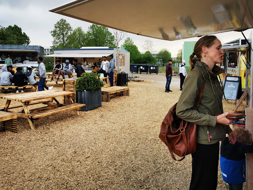 Rigtig fedt med streetfood i Gellerup. Det bliver lidt koldt på en blæsende dag, når der er ikke rigtig bygget læ nogen steder. Men ellers fine omgivelser. Mht maden så havde jeg måske forventet noget lidt mere eksotisk. Når vi nu er i Gellerup, så er tacos, pita, burger og kebab altså lidt antiklimaks.. der var to madvogne som var interessante i mine øjne: den somaliske og så en, som jeg ikke kan huske hvad temaet var. Og det vi fik på vores besøg fra de to vogne smagte godt, men retten som bare hed 'kødsovs med ris' var lidt skuffende i forhold til forholdet mellem kød/sovs og ris.