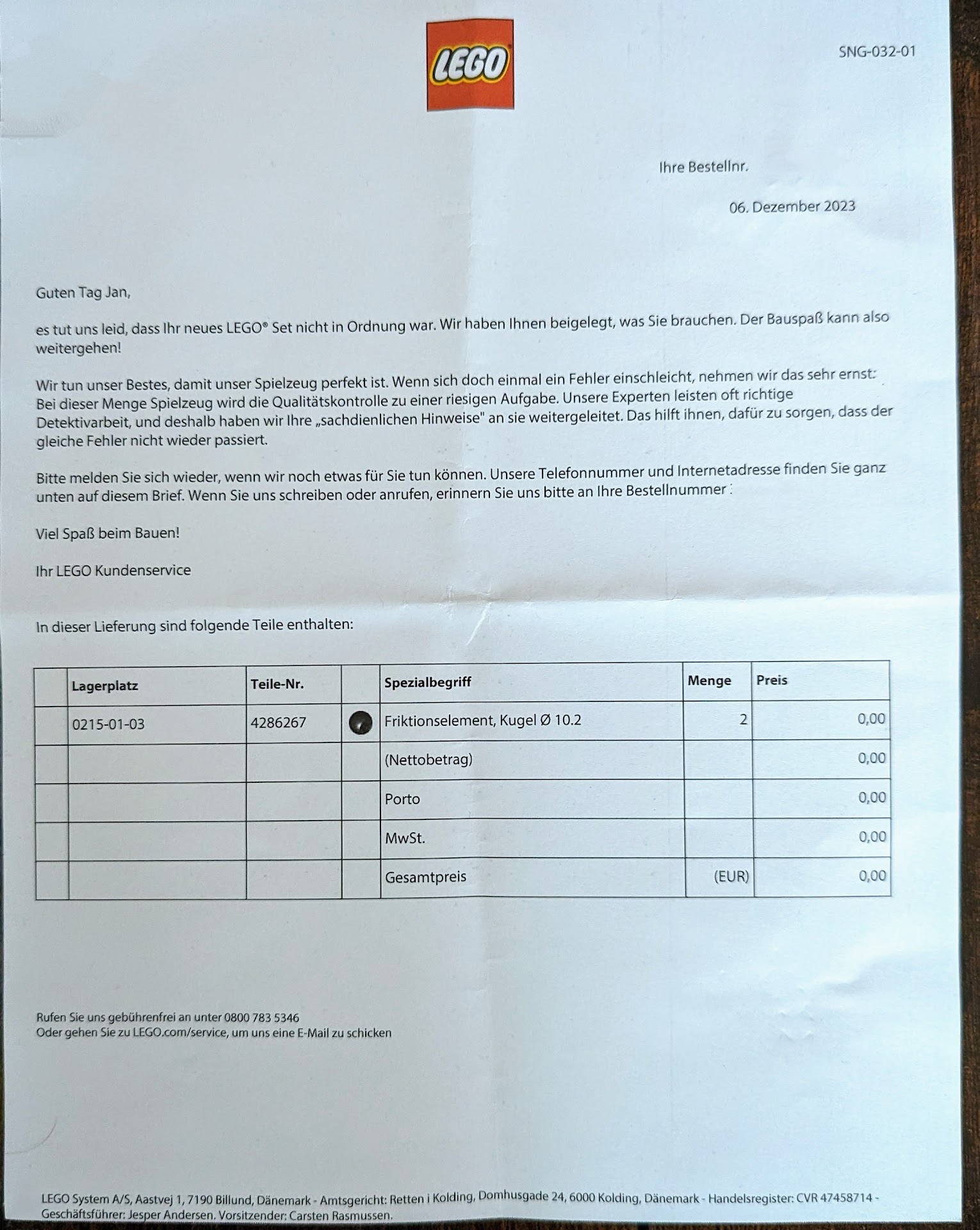 Compare: e.g. Ravensburger supplies spare parts for free and ships them for free in...