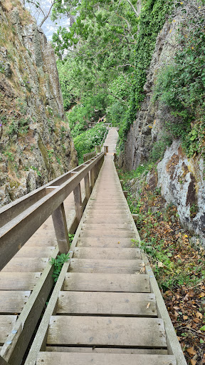 Read moreSuperschöne Umgebung. Wer nicht so gut zu Fuß ist und auch keine Ausdauer beim Treppensteigen hat, der sollte diesen Ausflug besser ganz bleiben lassen. Wer nicht so gut zu Fuß ist aber dennoch einigermaßen ausdauernd, der wird nach dem langen Treppenabgang recht bald ein plötzliches Ausflugsende finden, denn dort unten beginnt eine Klettertour über große und kleine Felsen. Lohnenswert ist es aber aufgrund des Ausblicks auch bis dorthin! Die sogenannte Höhle ist eher ein schmaler Durchgang, der an der hinteren Seite mit Felsbrocken einigermaßen abgeschlossen ist. In der Jons Kapel ist es so hell, dass man noch nicht einmal eine Handytaschenlampe benötigt. Kinder im Grundschulalter können aufgrund ihrer geringen Körpergröße durch die Jons Kapel hindurchklettern und dann auf der hinteren Seite der Klippe wieder nach oben klettern. Für Kinder ist hier also der Kletterspaß im Vordergrund. Wer nur wegen einer Höhle kommt, der wird maßlos enttäuscht sein. Wer allerdings wegen der atemberaubend schönen Natur kommt, der kommt hier voll auf...