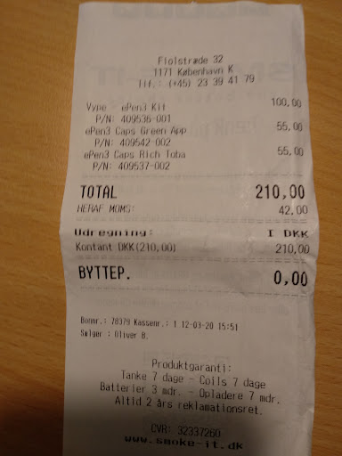 Read moreBest vape shop in central CPH as they sell brands other shops do not (such as SMOK). Good variety of liquids, I especially enjoyed their own custom flavors of Copenhagen themed shake n vapes. The service is great and I've had a good professional customer experience every single time, and I've so far purchased box mods, coils, and an awesome RDA as well as helpful advice on builds,...