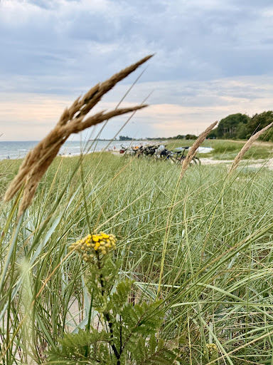 Strand Der Strand ist kein reiner Sandstrand, vor allem in östliche Richtung ist es überwiegend ein Kieselstrand. Aber auch da findet man immer weider "Kieselfreie" Zugangsmöglichkeiten zum Meer. Nach 3-5 Meter im Wasser findet man nur noch feinen Sandstrand vor, der sehr flach abfällt. Also ideal für Nichtschwimmer, Kinder oder zum Spielen und Toben. Der Wellengang ist auf Grund der Boddenlage eher gering. Traumhaft finde ich, das es ziemlich "leer" ist. Man ist zu manchen Zeiten fast allein am Strand und im Wasser, und wenn es voll ist, dann nur im westlichen, sandigen, Abschnitt. Aber auch da bleiben locker 5-10 m zum nächsten Besucher. Auf und neben der Düne führen Wege, auf denen gut Rad fahren und Spazieren gehen ist. Es ist nicht der breite und feine Sandstrand wie wir ihn von Prerow kennen, aber voll Badetauglich und gefällt durch seine geringe Besucherzahl und den besonderen Reiz der kleinen und großen Kieselsteine.