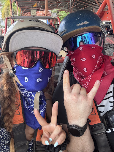 The bus from the resort was right on time. Don't be afraid to say no at the gift shop you start at because they will try to price gouge and they seem to be pretty good at it if you don't realize (somehow). Bring cash if you are going to buy anything. We didn't want to buy bandanas so we tied a shirt and shorts around our faces, which worked fine lol and saved us probably $30 USD. First, we drove to swim in a pretty cave (chest to neck deep water), watched a tribal dance (which was nice but felt very Caucasian to us LOL), and had some coffee and hot chocolate samples from the cacao farm. Hot chocolate was yummy but tasted suspiciously like Swiss Miss, may just actually be that good though. Then, we drove to the Macao beach, also very beautiful but people will try to sell you things of course. Someone put a monkey on me after I declined and when we took pictures on our phone, he told us it would be $45. We said that's too much and that we would delete these pictures in front of him so we got the price down to $15, which he seemed to be fine with. After the beach, there was a beautiful drive through the country back to the gift shop and bus pickup. There are showers to wash off.