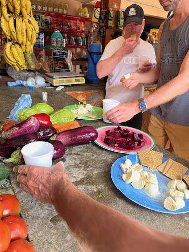 We drove through towns, stopping at one for another snack, and then headed to the beach to rinse off a little. The ride was exhilarating and stunning. Charlie was tossing little candies to the local children the entire ride. I think he might be a local legend.