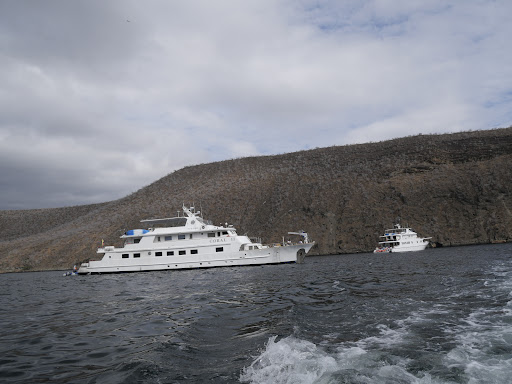 We snorkeled off Tagus Cove for an hour, the water was cold in mid-December and we needed wetsuits, and I shivered even with one on! I swam with several turtles and there were many colorful fish and jellyfish too, besides beautiful pink and blue corals. When we walked up the stairs to do the 90-minute hike, there were two pairs of Flightless Cormorants on the stairs, one with three eggs in a nest! Gorgeous views during the walk! We went here as part of a 2-week yacht cruise on Coral I with "Go Galapagos" around the Galapagos, in...