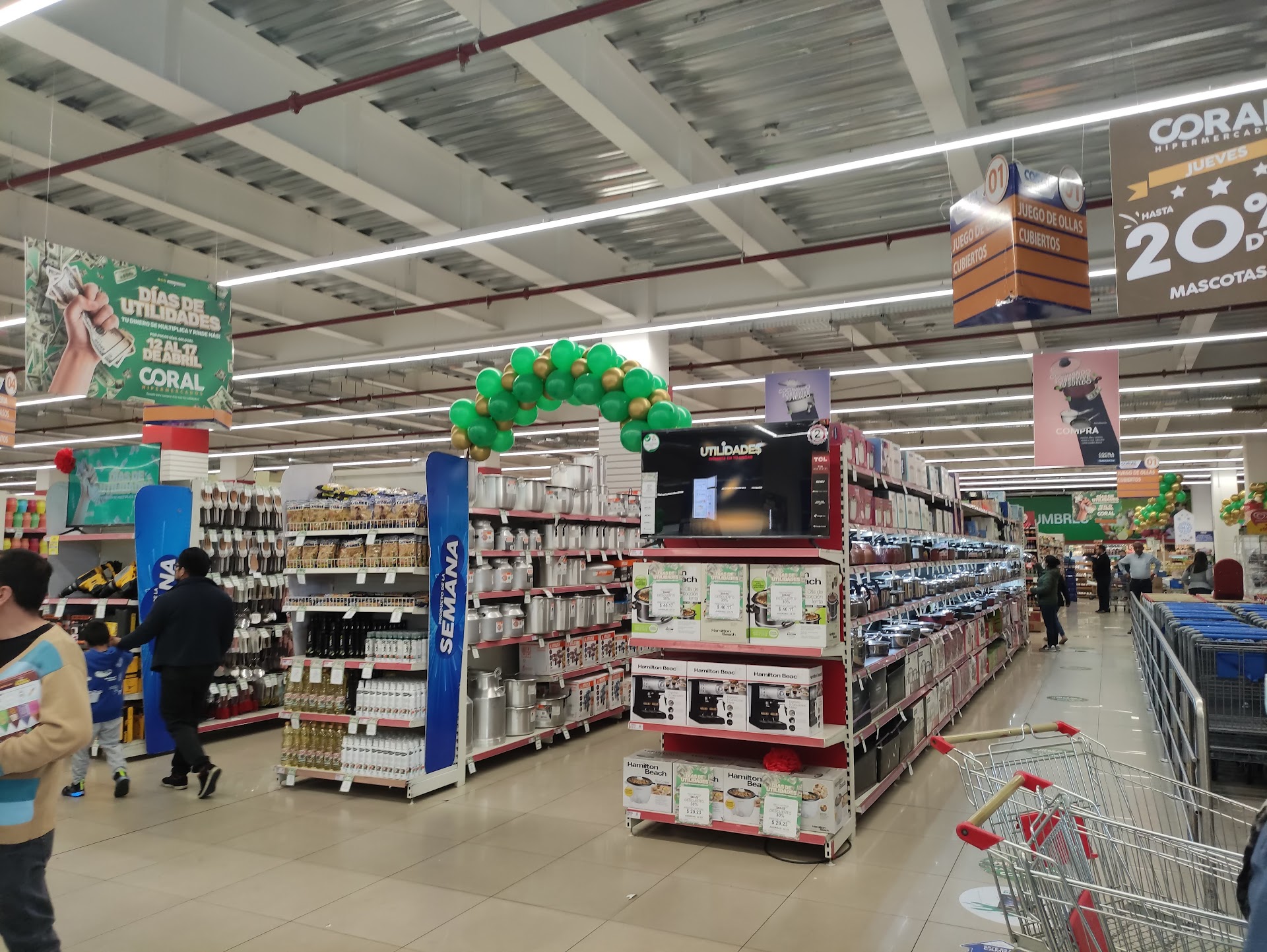 Read moreEl Coral es una cadena cuencana. Supermercado enorme con varias plantas en las cuales se puede encontrar ropa, artículos para el hogar, víveres, juguetes y ferretería. Dispone de suficientes puestos de estacionamiento y esta sucursal está estratégicamente localizada en el corazón del norte del Quito urbano. Destacan artículos importados a buenos precios y marcas azuayas baratas que no se encuentran en otros supermercados. Los pasillos son excesivamente estrechos y el supermercado siempre está lleno, entonces no lo considero apto para claustrofóbicos. Puntos fuertes: La variedad de ollas, sartenes, vajillas y artículos de cocina importados. Hay panadería cuencana, como las típicas rodillas de Cristo que no se encuentran en Quito. Suele haber excelentes 'ofertas', como unos aceites de oliva extra virgen italianos de 50 gr que los encontré a prácticamente 2$ c/u. Hay que estar pendientes de las redes sociales. Puntos débiles: No hay gran variedad de víveres general, pocas marcas de cada cosa. En cuanto a tragos (alcohol) hay cosas muy básicas, ni siquiera hay marcas famosas y conocidas de vodka o ron. Ni siquiera hay yogurt griego Kaaru de 900 grs,...