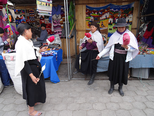 Colorful! Between Ambato and Baños lies the town that is named after the Salasaca indeginas who were forced to move from Bolivia to Ecuador during the Inca Empire under the mitmaq system. The Salasaca are known for their refined and colorful woolen weaves, and the best location for a bargain is the Feria Artesanal along the main road. To say it in Spanish: un buen mercado donde se pueden comprar productos...