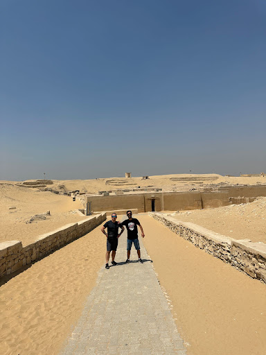 We found Ahmed at the airport upon arrival. Having done a bit of research, we decided to take up his offer for an air con car with a guide for the pyramids although we were staying in Giza, right opposite the pyramids. That was a god sent as although the distances are not huge, the heat is oppressive. It was also very smooth sailing to find an excellent camel tour, arranged by the guide - a must do - if you enjoy great pictures. The camel guide was amazing & a born photographer. Worth every extra tip he received! Ahmed was very helpful literally arranging this all last minute and despite my haggling ;))…our main guide spoke mediocre English but frankly we learned most of the history via websites and he did show us around to the really interesting parts we would have missed. My only criticism was his lack of photography skills - so our sphinx kissing pictures are way off 😂 but he was a kind & thoughtful guide who was a joy to be with. He of course- in good Egyptian fashion - took us to a really good restaurant which was on the surface like a high end cantine but with excellent quality & fresh food and took a bit of an extra “tip” by insisting he had to pay for it. I grumbled slightly but if you’re prepared for it just consider it as part of the overall tip. He went out of his way to secure a special type of tea my daughter wanted. I was really happy to pay directly to Egyptians and not via a...