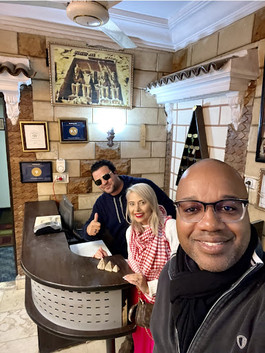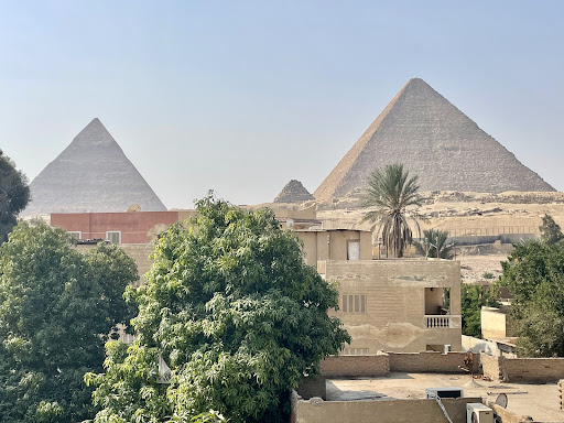 Stay with your family in Egypt at the 3 Pyramids View Inn! If you want to feel taken care of by family in Giza / Cairo, then look no further than the 3 Pyramids View Inn. Mohammed Farouk and his crew provide outstanding customer service. This was our first time in Egypt, and we stayed in four different hotels in Cairo and Sharm El Sheikh, including some 5-star luxury resorts. None of them compared to the hospitality, warmth and INCREDIBLE views of the pyramids of Giza on offer at this Inn. Upon our arrival, Farouk showed us to our room and the breezy, rooftop bar, a delightful spot where you'll enjoy breakfast and sunsets along with an evening cocktail with those amazing pyramids in the background. Farouk then took us on a walk around the neighborhood, treated us to a tasty welcome lunch and we just hung out with the locals that have known Farouk since he was a kid. Seriously an unforgettable way to get to know Egypt - by actually hanging out, laughing and exchanging stories with our lovely Egyptian hosts. Finally, what really showed how much the folks here care - I had a work zoom meeting that I was afraid I wouldn't be able to make given the timing of our flights. Farouk lent me a spare phone and SIM card just to make sure I'd be able to connect. Seriously - support above and beyond. Would rate 5,000 stars,...