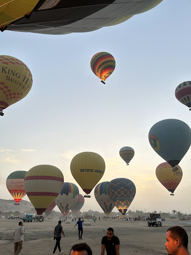 We left our cruise at 4.40am to a 5.10am ish arrival, from there we sat in the minivan as final confirmations on if conditions were okay to fly were done. The inflation started at 5.45am and we were in the air by 6! It is very stable and I felt very safe. Anter will point out key places to see. You can see views of the Luxor city and we landed 6.40am in the farmlands where the crew were waiting, they were so professional and we landed very smoothly.
