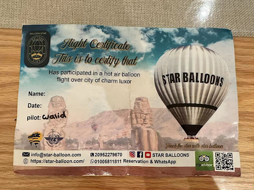 Read moreThe hot air balloon experience with Star Balloon was a nightmare. They sold more seats than the first flight (sunrise flight) seats capacity, and in the end you would be put into the second flight. As a result, we completely missed the most anticipated hot air balloon sunrise in Luxor. and the company ended up in a bunch of contradictory and rediculous excuses to refuse refunds. The Star Balloon will promise you that you will be in the first flight. We repeatly checked about this even when the company called us to arrange the morning pickup time and location. Both flight will be picked up at 4am in the morning. You have to simply wait until they put the first flight of balloons into the sky and inflate the second batch of balloons for your ride. By that time the sun will be already high in the sky. The problem with this company is that you will not get what they promised to give you. We would love to pay more to secure a first flight. This company just want your money because they know it is a one time deal. If you come to Luxor and have a good expectation of watching the sunrise on the Nile in the hot air balloon like us, AVOID...