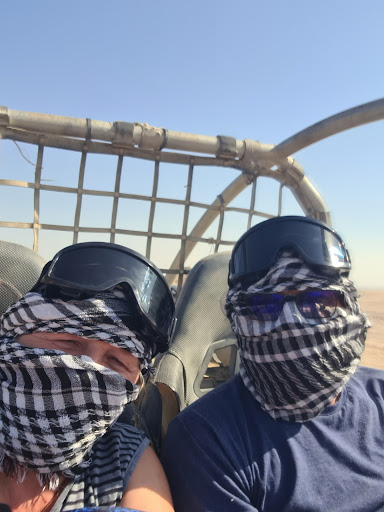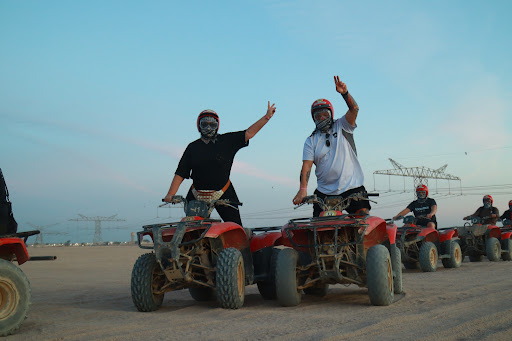 After our camel ride, we switched things up with a thrilling 15-minute buggy ride, racing through the sandy terrain. The adrenaline continued as we hopped on quads for a full 40 minutes, which was the highlight of the day! Riding through the vast desert on these powerful machines was both exciting and liberating, allowing us to fully appreciate the stunning surroundings.