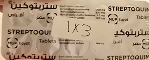 Die üblichen Handelsspannen sind 9–15 EGP für 10er Streptoquin, 20–32 EGP für 10er Imoflora. Insgesamt hätte das woanders weniger als 50 EGP gekostet. D.h. die Verkäufer haben uns knapp das 8-fache dafür genommen. Die Medikamente wurden uns wie auf den beigefügten Bildern so verkauft, ohne die Verpackung. Daher war es nicht möglich den gesetzlich vorgeschriebenen Preis auf der Verpackung der Imoflora einzusehen.