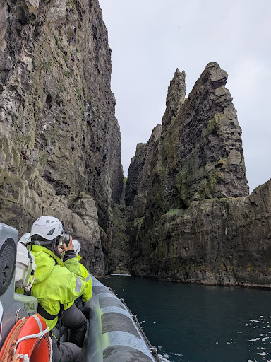 We visited in May 2025. We took the Hestur Cave Boat Tour. This was our favorite boat trip by far in the Faroe Islands. The tour starts at the Gamlarætt Ferry Port which is a short ride from Torshavn. We parked along the water. There isn't a parking lot so just park near where you can without blocking any access. Leave everything in your car as you only need your keys and camera. We were outfitted with waterproof full body suits, helmets, and gloves. Your shoes will be splashed so make sure they are protected. The rib boat sits two by two. The seats looked like as if you are riding a horse with some bars to hold on to. The closer to the front, the more you will buck. We were the last ones on the boat, so we got the bench seating in the back behind the captain. I feel like these were the best seats on the boat. The captain talked to us the whole trip pointing out different features and telling us stories. The water will definitely spray you in the back of the boat. I rather get wet versus banged around in the front. We were able to stand and sit in the back as we wanted. On our trip the weather didn't allow for access to the largest cave due to the roughness of the seas, but the trip was spectacular anyways. We went into plenty of caves and saw puffins and seals. The boat is powerful, and the captain is a real captain. Not just a tour guide. He mastered the waves with skill. I loved the rock music played while driving through the sea. It made it really fun like we were...