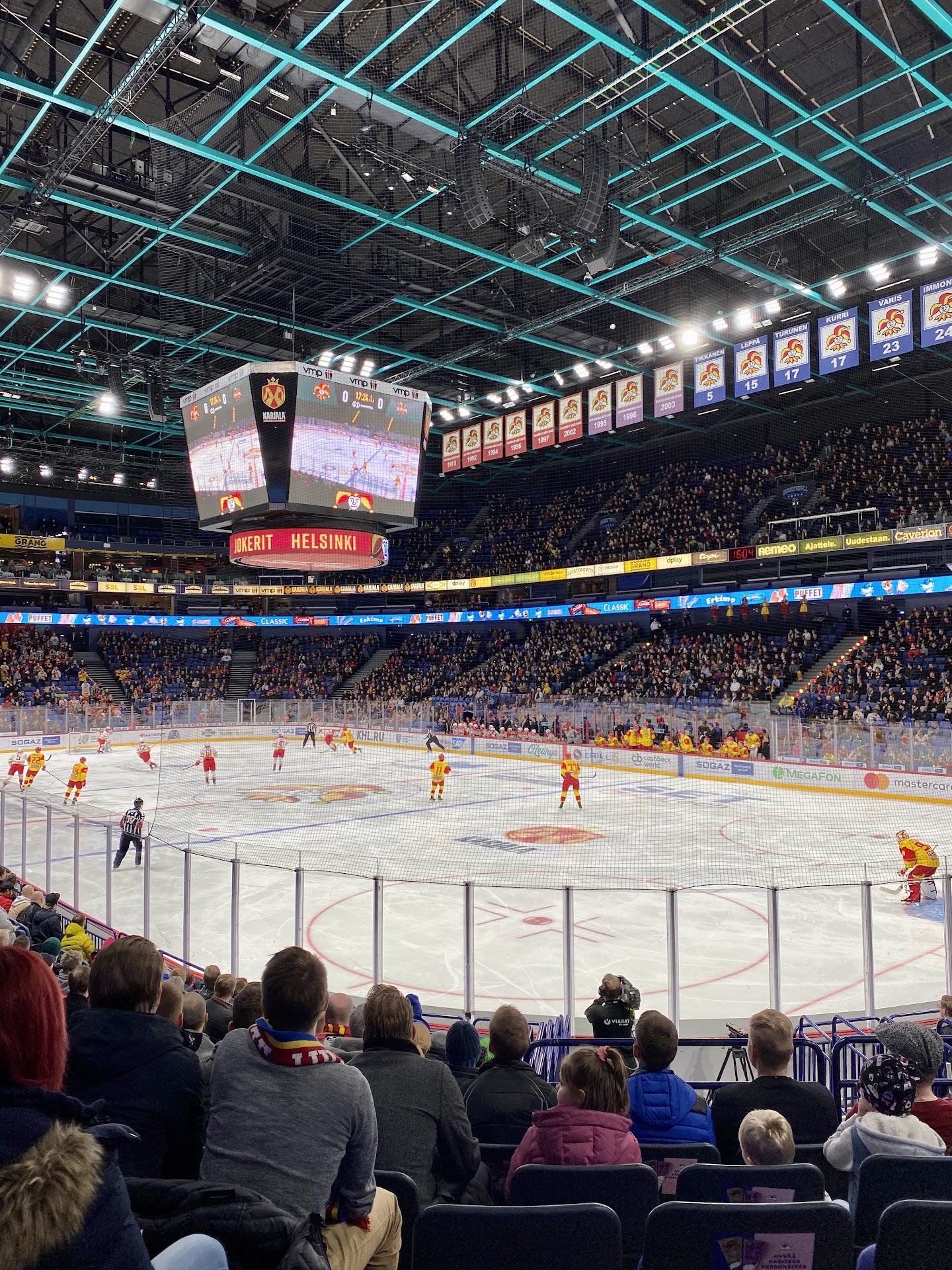 Read moreAreena itsessään on iso ja korkea. 15 000 istumapaikkaa myyty loppuun. Toiseksi ylin rivi, penkit olivat kovat ja aina oli noustava ylös, että ohi pääsee. Jalkatilat olivat erittäin pienet ja kengänkärjet koskettivat edessä olevan penkin selkänojan yläosaan. Nuoret kulki ketterästi, mutta vanhemmille ne ovat vaaralliset, jos horjahtaa. Ylimmän penkkirivin jalkataso oli leveämpi. Tältä tasolta näki kattorakenteet eikä selkeää näkyvyyttä ole vastapuolelle.