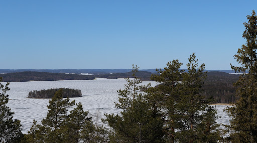 Näköala huipulta oli henkeäsalpaava ja täydellinen hiljaisuus ( jonka katkaisi vain kuikan huutelu ) paikka todella sai sielun laulamaan. Ylös kiipeäminen oli kivaa mutta muuten polut turhan juurakkoisiksi kuluneet. Ikävä kävellä. Ja maisema metsäosuudella...