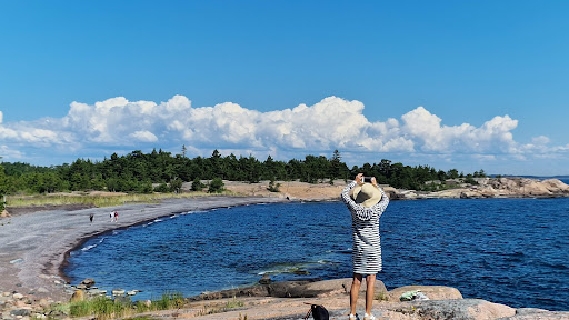 Täydellinen ilma osui Jussarö-retkipäivään. Aurinko helli parin tunnin merimatkalla (Tammisaaresta) mennentullen. Luontopolku on merkitty vain toiseen suuntaan, lähtö kahvilan pihasta, joten huonolla suuntavaistolla varustettujen kannattaa kiertää ”oikeinpäin’ Kahvilassa oli päiväsaikaan melko surkea tarjonta. Grilli aukesi vasta myöhemmin, ajateltu veneilijöitä eikä retkeilijöitä. Kauniit maisemat sekä metsässä että rannoilla. Iron beach kannattaa ehdottomasti käydä katsomassa, minä en ainakaan ollut ennen nähnyt mustaa auringossa kimaltavaa hiekkaa. Oli mykistävä näky jota ei saanut kännykän kameralla...