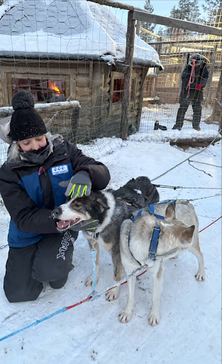 What an amazing experience! Catherine is a fabulous, generous host. We stayed in a cabin on-site (minimum 3 nights) and it was spacious, cosy and had everything we needed and more. Catherine loaned us a toboggan and a foot sleigh along with snow shoes. She also provided our kids with warm overalls and boots for the duration of our stay. These were delightful add-ons that made the stay so much more fun for our kids. We had a 3 hour dog sledding experience around / over lakes and through forests . It was one of those unforgettable experiences. Catherine involved us in harnessing the dogs (we also got to meet the puppies!) and we were in control of our own sled—stopping to change ‘driver’. We watched fascinated as the dogs would grab mouthfuls of snow on the run! The peacefulness of the ride was beautiful. The dogs clearly enjoyed it too. Catherine served us blueberry juice and blueberry cake around an open fire to cap-off a lovely morning. We took the opportunity to do a day’s skiing at Olos—about 10mins drive from Doghill. Groceries could be purchased in Muonio—about 15mins away. End of the sledding season is...