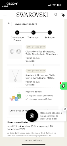 Read moreDéception. Achat du bague à 140€, défectueuse (trace noir sur le doigt + effet toc) donc échangée 1 fois, puis 2, perte d’un diamant. Bref pas de remboursement. On nous explique qu’il ne faut pas trop portée la bague etc… première fois que j’entends cela! De ce que j’ai compris, rien n’est en or ou en argent ce n’est que du plaqué, j’aimerais bien savoir ce que j’ai acheter pour 140€ dans ce cas. Ce n’est pas ma première mauvaise expérience avec Swarovski, donc c’est...