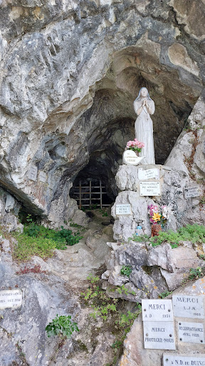 C'est un lieu où il faut absolument aller pour toute visite à Duingt. Il faut compter environ 0h15 depuis la "Rue du Vieux Village" jusqu'à la grotte, ou plus si on prend le temps de profiter. Même si le chemin est assez raide, la Grotte de Notre-Dame du Lac est facilement accessible, le sentier étant goudronné et bien aménagé grâce aux nombreux bancs. Le chemin de croix se situant ENTRE la "Rue du Vieux Village" et la grotte, qui est très intéressant à voir. Arrivés à l'entrée de la grotte nous pouvons profiter pleinement de la vue sur le grand lac grâce aux nombreux bancs. Ce lieu est un coup de cœur pour moi. (Venu le Mercredi...