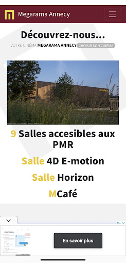 Read moreNouveau cinéma de quartier vraiment au top ! Locaux flambants neufs, équipements modernes très fonctionnels, un hall d'entrée gigantesque en plain pied aux abords immédiats d'un grand parking gratuit. Accessible aux personnes à mobilité réduite : grandes portes, sol lisse sans marchettes, avec une zone-guide de cheminement adaptée, un ascenseur en complément des escalators et escaliers pour les accès en étages. Énorme avantage : excentré du cœur de ville Annécien (cinémas saturés et devenus trop compliqué d'accès en circulation et trop cher en stationnement) mais Mégarama est stratégiquement placé au milieu de la zone commerciale de Périaz-Seynod, donc à moins de 10min en voiture du centre ville d'Annecy, mais aussi à deux pas d'un arrêt de bus très fréquemment desservi par plusieurs lignes directe depuis la gare d'Annecy et pleins de points de la ville et de toute son agglomération. Une équipe dynamique hyper accueillante, service agréable et souriant, staff toujours chaleureux (et safe, LGBTQIA+ friendly, respect des pronoms, pas de discriminations ni jugements) programmation avec beaucoup de choix réguliers qui suivent les sorties et des diffusions spéciales aussi. De grandes salles avec des sièges confortables, larges et de très bonne qualité, accoudoirs amovibles pour s'adapter aux envies, excellente disposition en hauteur pour une bonne visibilité partout. Projections en haute définition sur écrans gigantesques, luminosité bien réglée, volume sonore bien géré avec une excellente acoustique dans des salles bien feutrées, et en prime Une salle 4D pour vivre des films avec l'expérience unique des effets spéciaux associés accompagnants les actions en direct (mouvements des sièges, pulsions d'air, brumisations etc...). Rapport qualité prix honnêtes dans la moyenne du coin Annécien et des cinémas en général. Équipements et commodités maintenus propres et fonctionnels. Petite cerise sur le gâteau, l'évènementiel et soirées spéciales qui s’amorcent déjà avec brio : à peine quelques mois après l'ouverture, excellente organisation d'une soirée spéciale Halloween couplée à la sortie du film FNAF ("Five Nights at Freddy's" adapté de la saga jeu vidéo), le plaisir d'une animation cosplay dans le thème (avec un accueil bienveillant des cosplayers dans de bonnes conditions), mais aussi un partenariat avec des intervenants locaux pour assurer divertissement et activités (le tout gratuit !!!) de la soirée (mise en place d'écrans et jeux vidéos consoles (dont FNAF bien sûr) + réalité virtuelle, ainsi que du jeu de rôle sur table avec game master immersif et performant, et aussi l'incroyable escape game sur place parfaitement animée, avec en prime un stand découverte de librairie spécialisée BD/comics/mangas...). Bref on recommande cette bonne adresse, expérience garantie de qualité et ce n'est que le début ! Attention franc succès et salles combles lors de l'évènement spécial, heureusement ça a été très bien géré avec un très bon aménagement d'espace et une très bonne capacité d'accueil mais pensez à réserver d'avance (service en ligne disponible)...