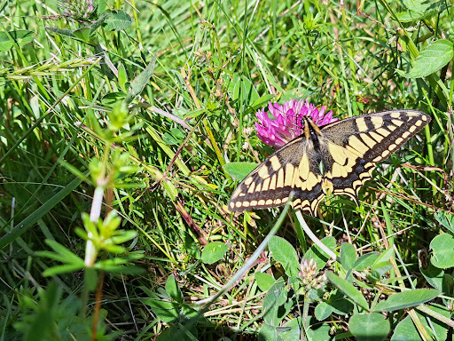 Great butterfly spot place! Swallow tail, mountain ringlet, black vein white, (heath?) fritillary,....and more. Meadows filled with life, critters and scents of summer....