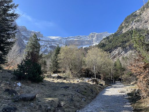 Read more3e randonnée après les 2 autres cirques, nous avons opté pour la randonnée jusqu'à la cascade ayant déjà un peu d'entraînement. Ayant lu pas mal de commentaires, je dois dire que je suis tout à fait d'accord sur le côté hyper touristique du lieu. Même parti à 10h, en semaine, il y a beaucoup de monde. Les nombreuses crottes sont parfois dérangeantes au niveau olfactif. Le chemin est effectivement une autoroute et pert un peu le charme de la randonnée de montagne. Le chemin est plutot ombragé le matin ce qui est agréable en cas de journée chaude. Avec nos 2 enfants de 6,5 et 9,5 ans, nous avons atteint l'hôtellerie au bout de 1h15. La première partie se fait assez bien...On va dire que le dernier kilomètre est plus hard. La 2e partie menant à la cascade monte tranquillement au départ (nous avons pris le chemin de gauche) puis les derniers 100aines de mètres sont très rudes même pour les adultes. C'est très pentu, glissant car que beaucoup des cailloux /graviers... Nous ne sommes pas aller toucher le bout mais nous sommes arrêtés juste avant car les enfants n'en pouvaient plus. nous avons mis 45mn sur cette 2e partie (au lieu des 30). La montée nous fait découvrir un cirque avec de nombreuses cascades, peu de végétations. .. Il faut redescendre un peu pour se trouver un place confortable pour pique niquer. Le debut de la descente est du coup tres glissante, un peu moins lorsque l'on s'ecarte sur la droite. Je vous conseille de passer le torrent pour voir les Névés sur la droite de la cascade (on ne les voit pas du chemin principal). Plus bas, le végétation reprend vie et le torrent offre des accès sympas pour mouiller les pieds ( très fréquenté ! ). La descente se fait par le même chemin qui est une vrai fournaise l'après midi et plutôt désagréable avec l'affluence de touristes. Nous avons bifurqué sur la droite a un moment donné sur un chemin qui partait ce qui a permis un itinéraire bis plus ombragé, moins fréquenté et surtout avec un plus petit chemin type montagne qui a beaucoup plus de charme. Nous avons mis 1h30 au total pour redescendre. Prévoir quasi 1,5l par personne par temps haud car on consomme !!!. Nous avions prévu un peu plus de 4l pour 4 (dont 2 enfants) et nous avons été quasi à court juste en arrivant dans le village. Nous avons aimé cette balade mais avons préféré le cirque d'Estaubé (moins fréquenté et petits sentiers type montagne) Ps "pratique" : La partie forêt offre de temps à autre une petite cachette pour la pause pipi des dames...Beaucoup plus ardu du côté de la cascade du fait de la fréquentation !!! Je ne sais pas si l'hôtellerie permet l'accès aux toilettes sans consommation. Parking à Gavarnie est payant à 5e sauf si vous logez à un camping du coin qui vous offre le macaron du...