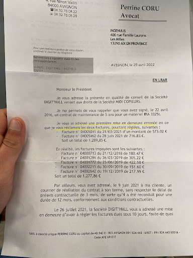 Read moreA fuir Contrat qui reviens chers au long terme. Qui plus es pour des machines qui tombe en panne, sans pret de machine en attendant la réparation. Retour de l'imprimante qui à tenu 1 semaine avant de refaire le même problème ( il faut ouvrir et fermer le tiroir avant chaque impression, impensable). Malgré les réclamations pour qu'on me change l'imprimante, refus express du commercial qui voulait que je signe un nouveau contrat pour la changer. Evidement j'ai refus car je suis sous contrat de location et maintenance, il ont le devoir de me fournir une imprimante viable. Après 1 an et demi avec cette imprimante au placard , toujours aucune réponse positive à mes réclamation. J'ai acheté une imprimante Pro Canon et je n'ai aucun soucis depuis un an et demi.