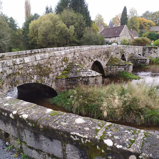 Joli pont de pierre qui mène au village de felletin . Une petite aire de pique nique ombragée juste à côté au...