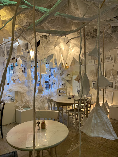 Read moreJ'ai adoré, ce n'est pas la 1ere fois que je viens. Toujours de nouveaux crus de café ☕ à découvrir. Les thés sont excellents, de petits biscuits faits maison, tisanes odorantes.. L'endroit sert de Galerie d'exposition pour des createurs, artisans, le lieu est décoré subtilement, de fleurs en papier, c'est féerique, je vous l'assure. La cheminée était allumée et le divan fasse à elle, nous tend les bras ! Les éclairages sont aussi partie intégrante du décor et donnent une ambiance chaleureuse et aimable.. Un lieu à découvrir absolument, juste après la porte de Noyers sur Serein sur la gauche au début...