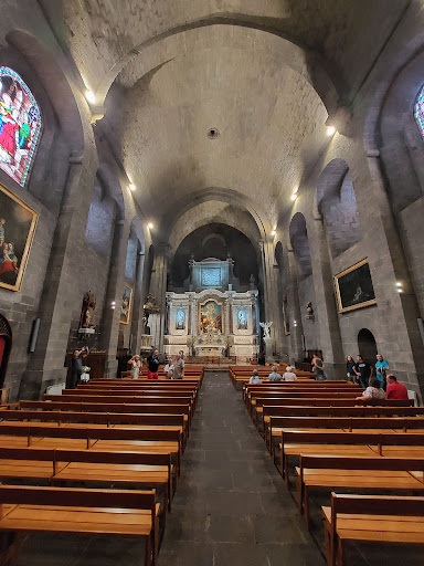 À l’intérieur, l’ambiance est toute autre : sombre mais paisible, avec de beaux vitraux, un retable baroque coloré, et surtout un orgue monumental au-dessus de l’entrée. Si vous avez la chance d’entendre un concert ou un office, le son y est magnifique ! 🎶