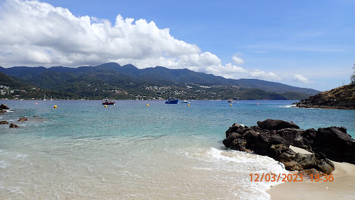 Read moreGROS PIEGE A TOURISTES Le site a du être remarquable il y a des années. Nous avions loué un kayak histoire ne pas participer au ballet des bateaux à touristes. Jolie balade de 15 à 30 minutes suivant le vent. Arrivée sur place en début d'après-midi, des dizaines de kayaks sont garés sur la plage de gros galets Ensuite, difficile de se trouver une place pour se poser. Heureusement, les gens se restent pas trop sur place. Nous sommes venus faire du snorkelling et nous avons donc fait les 3 sites. Attention quand tu viens en kayak tu n'as pas le droit de franchir les bouées jaunes. Les bateaux à touristes eux sont derrière. Autre chose, les kayaks n'ont pas le droit de faire le tour de l'île. Pourquoi ?? Réservés pour les bateaux. Snorkelling = Arnaque Aucun coraux, tout est mort. Les fonds sont vaseux et les pierres glissantes. Des poissons certes, mais il y a pas foule par rapport à la plage du Pain de Sucre sur Grand Terre. C'est même mieux à quelques encablures de là, du côté du bain du curé. Des beaux fond marins au moins. N'y allez pas, ne partirez pas à la d'échéance de ce site. GROS...