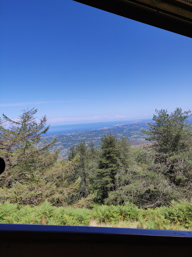 For a fit, but unprepared person, 2 to 2½ hours are required to climb this small but steep and challenging mountain from the train station. The last stretch before the top is quite unpleasant due to the combination of steepness with loads of rocks that are more or less loose and slippery. You can also ride up for a 19.50 € return ticket or 16.50 € one way. I walked up and rode down. The views, even from 2/3rds of the way up are great: you can see from Hendaye to Hossegore and beyond on a good day. Vultures and horses populate the mountain. In the summer, there's a crowd of all sorts with children, so while tedious, it's quite feasible for most people so long as you wear sun protective clothing (hat) and good climbing shoes and carry water. Some people wore sneakers which I would say are pretty unsuited given the risk of spraining there is. At the summit, three cafés and restaurants are there if you require food or just refreshments. The prices at the first café you reach on arriving are OK for such a touristic place. You can catch the train back down on a one-way ticket for 16.50 €. The ride lasts...