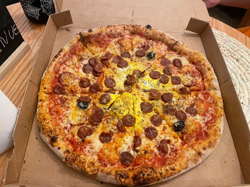 Read moreDécouverte de la pizzeria via le site internet qui est très bien fait, très ergonomique. Le déroulé d'une commande de pizza est parfait de la prise de commande jusqu'à la dégustation (sympathie, réactivité, choix, propreté du lieu) Cependant, c'est avec regret que je suis obligée de mettre un 4/5 vis-à-vis de la qualité des desserts : cookie sec & timarisu avec biscuit speculos tres humide et mascarponne avec peu de goût. Mais je recommande quand meme vivement...