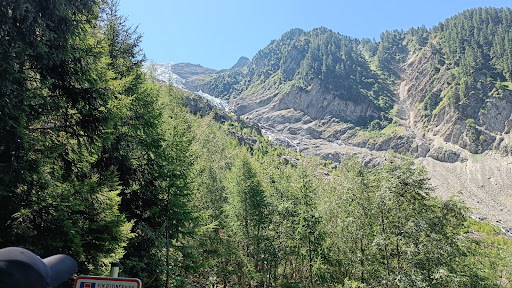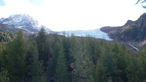 Du côté point de vue, la on est franchement pas mal ! La vue sur le glacier quelques centaines de mètres plus haut est éblouissante ! Et que dire de l'aiguille du midi majestueusement planté dans le décor et qui semble si proche ! Pour y accéder... ça grimpe ! En même temps c'est de la montagne ! Il faut compter 30 min de marche un peu raide mais sympa pour accéder aux 2 premiers points de vue. Malheureusement avec le réchauffement ces 2 points de vue n'en sont plus vraiment ! Il faut donc compter 30 min de marche supplémentaire et cette fois bien dans la pente, pour accéder au 3e point de vue à un peu plus de 1560 m d'altitude. Mais franchement ça vaut l'effort ! Vous en prendrez plein...