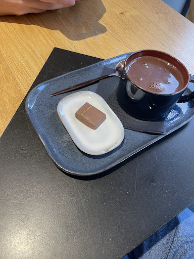 Read moreJ'ai passé un excellent moment dans cette chocolaterie qui fait également salon de thé. Le thé vert était excellent et un petit chocolat artisanal au choix est rajouté. Le petit plateau qui m'a été servi était très raffiné : tasse haute en grès qui rappelle l'esthétique japonaise, un sablier pour le temps d'infusion, le fameux chocolat....j'ai choisi un mendiant au chocolat noir ...délicieux !!!.... Cet artisan propose également des cafés et chocolats chauds. Tous ces chocolats sont fabriqués sans huile de palme et en bio...notamment son chocolat à la fraise avec pulpe de fraise !!! Cet artisan qui vient d'ouvrir sa boutique mérite vraiment qu'on s'y arrête pour une pause gourmande où pour l'achat de ses chocolats excellents ! Une belle...