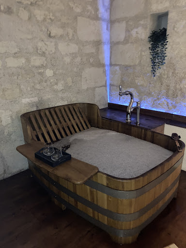 ExpĂ©rience originale vĂ©cue en couple - formule Cupidon đ Dans un rĂ©seau de caves sous les allĂ©s de Tourny, bains au vin ou Ă la biĂšre (nous avions souhaitĂ© du vin, nous avons eu de la biĂšre). Pour les amateurs de biĂšres, une IPA est Ă la dĂ©gustation, beaucoup de mousse et gout acidulĂ©. Si vous ĂȘtes amateurs de spa, vous trouverez surement que le bain mĂ©riterait d'ĂȘtre un peu plus chaud. En 30 minutes il se refroidit assez vite. Planche charcuterie/fromage trĂšs bonne (merci aux #commerces de Tourny). Quelle surprise de dĂ©guster la planche sucrĂ©e (les gourmands vous apprĂ©cierez elle est SUCREE; gateau basque, dunes, cannelĂ©s, macarons) dans un piĂšce cocoon... en compagnie d'autres clients (tout aussi dĂ©sappointĂ©s d'ĂȘtre accompagnĂ©s pendant leur "voyage de Cupidon"). Ă noter, une douche sur 3 en eau, ça tombe bien la gĂ©rante dĂ©conseille la douche pour conserver les bienfaits du bain de houblon (pas d'odeurs d'alcool sur la peau ni dans les cheveux) / vestiaires communs - on a retrouvĂ© les clients croisĂ©s dans la piĂšce cocoon :)