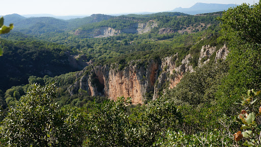 Une piste forestière de plus de 700 mètres mène au point culminant de la falaise qui surplombe les gorges de l'Issole et du Tombadou.