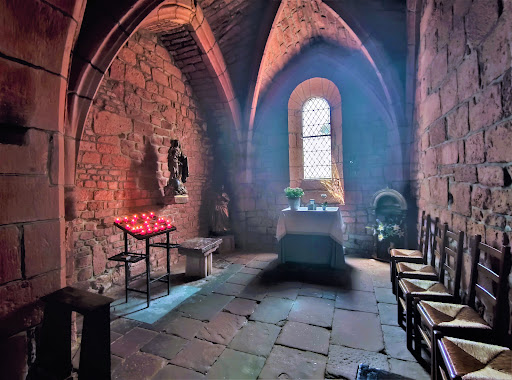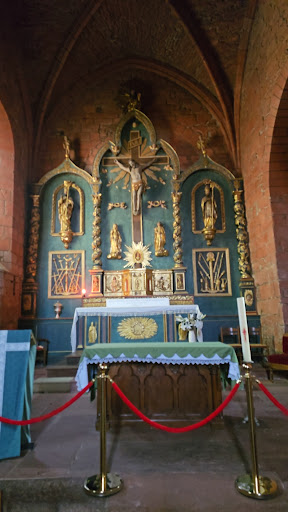 Emblème de cette ville rouge, cette église du 11ème et 12ème siècles, est le plus ancien monument de la cité. Agrandie au 15ème siècle, modifiée et fortifiée pendant les guerres de religion, l'architecture peut paraitre incohérente. Mais regarder les extérieurs et y entrer offrent un agréable voyage dans le temps, chaque siècle a laissé sa trace. Les catholiques et les protestants l'ont fréquenté ensembles, ce qui n'est pas commun, évitant de sanglantes confrontations dans une période mouvementée. La proximité de la chapelle des Pénitents Noirs, de La Halle (inscrite depuis 1987 par les M.H) la présence sur la place de la Croix de la Passion (inscrite depuis 1932 par les M.H.) font de cet endroit un lieu éminemment historique. Nos anciens étaient, comme partout en France, des maîtres bâtisseurs. Ici ils ont élevé des bâtiments de grès rougi par l'oxyde de fer sur un sol calcaire. Collonges la rouge est située tout près d'une faille géologique qui sépare les deux...