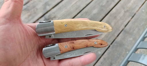 Je suis venu deux fois, en ayant au préalable vérifié sur internet que la boutique était ouverte. J'ai trouvé porte close...les deux fois, en semaine et en pleine après-midi... Je peux tout comprendre (même si en pleines vacances scolaires, en face du plus bel hôtel de la ville, dans un lieu hautement touristique à 14h30 je trouve que c'est tout de même un peu bête que la boutique soit fermée). Mais au moins prévenez ! J'ai payé deux fois le parking et ai parcouru la cité en long et large UNIQUEMENT pour venir ici (alors que le site internet est top et que la livraison est gratuite). Vous pouvez avoir mille raisons de fermer mais aucune de ne pas le signaler. Puisqu'il faut mettre une étoile au minimum, elle est bienvenue car les couteaux Eustache (que je connais par ailleurs) sont de qualité, mais mon avis porte sur la boutique... Je précise: aucun écriteau sur la porte, aucun message sur le répondeur téléphonique. Manque évident de respect du client fut-il local bien que je puis comprendre que vous visiez le touriste. Vu la fréquentation du site ce jour, vous avez perdu pas mal de clients (dont un...