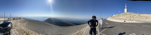 One of the visual landmarks that watch over Provence. For cycling enthusiasts, climbing to the top is a once-in-a-lifetime goal. For those with sporty inclinations, the ascent can be approached both on foot (there are marked routes) and by bicycle. This time, we went up by car starting from Malaucenne. Numerous cyclists on the road, of all ages, to whom drivers must be cautious and offer them the necessary courtesy in traffic. I was impressed by several mountain running enthusiasts I met along the way. The scenery is superb, especially in the alpine hollow area, where the view is absolutely gorgeous at 360 degrees. Pay attention to the weather because, at the top, weather conditions can change radically in a few minutes. Even though it was hot down in the valley (34-36 C), up on the peak, it was only 20-21, and the cold wind was blowing hard. Have a jacket ready, too. Don't forget your supplies as upstairs there is only a souvenir shop and a small bar with a relatively limited offer. Even if you only have one day to visit Provence, if the weather is excellent and the sky is clear, I recommend starting the day with the ascent of Mont Ventoux and then checking off a few other unmissable places: Gordes, Roussilo on, Abbaye de Sennanque, Chateaxuneuf du...
