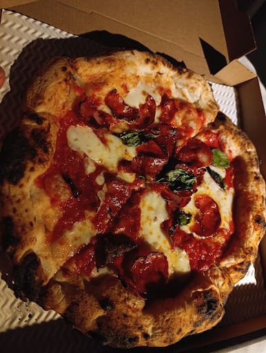 J’arrive en ce dimanche soir avec une envie de pizza 🍕 J’appelle à trois reprises à chaque appel téléphonique la ligne est occupée Cela ne m’arrête pas Je me rends sur place pour commander On m’annonce qu’il va falloir attendre Je prends mon mal en patience Et je commande mes deux pizzas Regina et Piccante avec supplément burrata Je reviens plus tard Je les cherche Arrivée à la maison j’ouvre nous avons là bien deux pizzas Napolitaine style taille standard avec une bordure épaisse conformément au style de Naples Juste ce qu’il faut en garniture on voit que les ingrédients sont qualitatifs rien qu’à l’œil Nous coûtons…. Et la magnifique la pâte est cuite à point la tomate très goûtu et nos garnitures sont impeccable Alors certes ce sont des pizzas qui sont dans la fourchette haute niveau tarif mais passer cette barrière Je vous certifie que c’est la meilleure pizza à...