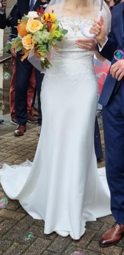 4ème rendez-vous, essai de la robe. Les retouches étaient mal faites, ma robe baillait dans le dos alors qu'on nous avait promis le contraire. La vendeuse essaie de nous vendre un "scotch double face" pour faire tenir sur la peau... Imaginez s'il fait chaud le jour du mariage. Et quand on lui demande de le tester "Ah non non non je peux pas". Même en lui disait qu'on lui paierait! Au final c'est ma témoin qui a trouvé la solution pour retoucher ma robe. Retouches faites dans le quart d'heure... Sauf que quand je vais à nouveau vers la cabine après les retouches la vendeuse me sort "Ah, vous voulez l'essayer" tout en regardant sa montre. Je la ré-essaie quand même parce que j'INSISTE, et ça va heureusement. Sauf qu'avec la retouche, le bouton pression ne tient plus, le jour du mariage, ma sœur a du coudre la robe à la main pour ça tienne.