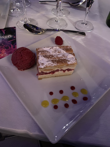 Read moreEn visite le 18/05/2025 pour un repas de midi +spectacle je reste mitigé entre l'excellente prestation des artistes et le repas en lui même avec une salle surchargée et très bruyante. Le personnel fait le job et je le félicite car malgré tout il garde le sourire face à la tâche à accomplir dans un brouhaha jamais connu. La mise en bouche (bonne) sera avalée très vite ç'est de bonne guerre , le carpaccio de truite mérite qqes étoiles mais que dire du plat poulet au marc et ses légumes ? Sachez que l'assemblée était composée en grande majorité d'anciens 75 ans 80 ans , à 58 et 56 ans nous étions dans les plus jeunes, donc de personnes qui ont une certaine connaissance des produits et de leurs qualités ... bref c'est pas sur le poulet qu'il faut marger avec cette clientèle car il était pâteux. Au delà de ce repas digne de la grande surface reste un très beau spectacle malheureusement gâché par un manque d'intimité et un repas très moyen. Toutefois the show must go...