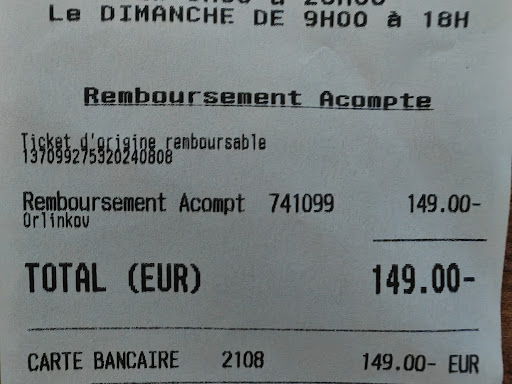 Read more[edit] autant vous dire que malgré la réponse du magasin, le "responsable du rayon concerné" n'est jamais "revenu vers moi" : allez, next, à Nice Lingostière, ce sont de vrais commerçants 👍🏻