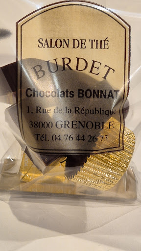 Sur la route des chocolats d'exception, le chocolat Bonnat a une place particulière pour moi. Les meilleurs que j'ai pu gouter. On déguste ce chocolat comme on goute du vin. Chaque tablette a la même composition (cacao 75%, beurre de cacao, sucre et rien d'autre : jamais trouvé d'autres dans cet ordre). C'est juste la fève qui change. J'adore faire des dégustations à l'aveugle. Les saveurs nous font voyager tant dans le temps que les pays. Et notre palais est aux anges ! Le prix suit bien sûr. Certaines tablettes de 100g coutent plus de 8 euros ! Mais ca vaut le cout de gouter entre autres un Maragnan (8,20€), un Colorados (environ 7€), Real del Xoconuzco ou un Cote d'ivoire (4,5€ je crois). Mes préférés. L'intensité des arômes rassasie le palais avec une ou deux carrés. Il est intéressant d'évoquer l'emballage qui tout en étant sobre et de qualité ne pèse pas sur le prix de la tablette comme certains chocolatiers parisiens qui se sentent obligés de créer des boites en métal et manipulées avec des mise en scènes clownesques ; un surcout inutile lorsque le contenu a une certaine qualité. Ces chocolats Bonnat méritent de faire travailler le palais. Jamais plus vous n’achèterez du chocolat industriel bourré d'exhausteur de gouts et autre lecitine de soja etc. ! Dommage que l'accueil Burdet soit insignifiant, impersonnel. Une vendeuse bien formé à ce qu'on lui demande de répéter et ne sait pas faire exprimer ces fèves. Pourtant ca, mériterait un registre passionné, digne du chocolatier et de ses chocolats d'exception. Lieu un peu hautain aussi. Ca me donne toujours l'impression que ce magasin est destiné à une minorité. L'ambiance ne me donne pas envie de prendre un chocolat sur place. Vous l'aurez compris, l'accueil altère...