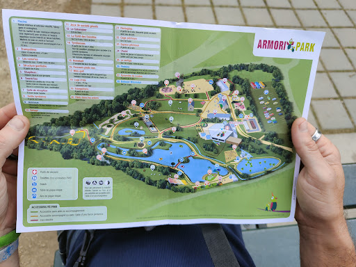 Parc bien arboré agréable par les grosses chaleurs. De nombreuses activités pour tous les âges, même si je trouve que pour les moins de 5 ans il y a beaucoup moins d'activités à faire. Pedalo, tyrolienne, trampoline,filets dans les arbres, jeux pour grimper, petit bateau sur l'eau, un espace avec des animaux, structure gonflable, mini golf et toboggan avec glissade avec un sac en toile, espace aquatique de petite taille surveiller, luge.. Possibilité de pique niquer sur place des casiers a disposition pour y déposer ses affaires et de retourner à son véhicule après 13h sous réserve de se faire tamponner la main pour rentrer de nouveau. Espace en totalité non fumeur. 15 euros l'entrée et gratuit pour les moins de 4 ans. L'entrée du parc donne accès à toutes les activités. Pensé a arriver des l'ouverture a 11h car en début d'après midi il y a énormément de monde ce qui rend difficile l'accès a certaines activités.