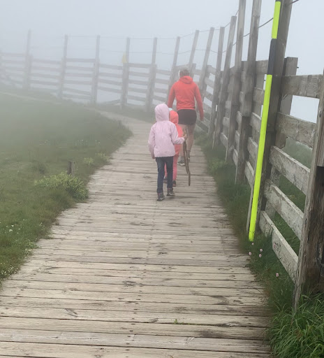 A l'arrivée : une rampe en bois PMR qui n'est pas terminée (20 cm entre le sol et la fin de la rampe) et qui donne accès sur un champ de gros cailloux. La personne responsable de l'arrivée très prévenante est heureusement venu nous aider car impossibilité de rejoindre en fauteuil la rampe pour arriver au panorama.