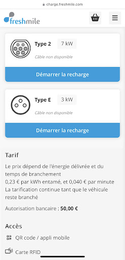 Read moreIl faut avouer que le nombre de bornes (30 t2) est encore suffisant. Mais je suis complètement d'accord avec le post précédent. 0.044 cent par minute dès la première minute c'est indécent. Tous ceux qui ont une petite batterie, généralement (avec un chargeur "lent") sont pénalisés. Exemple ici 11€50 au total pour 3h de temps (8€) passés a charger 14kw.h (3.5€), c'est plus cher que l'essence à ce prix. Pourquoi ne pas mettre une période minimale de gratuité de charge? 2 ou 3h par exemple? Autre anormalité: absence totale de bornes régionales ouest-charge: ni sur place ni aux...