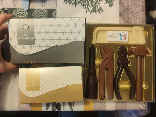 Read moreChocolatier, fabrication sur place ,visites possibles sur rĂ©servations RĂ©server aux gourmands đ j,ai dĂ©couvert cette maison aprĂšs conseil d,un ami qui Ă effectuĂ© quelques achats rĂ©cemment pour satisfaire petits et grands en cette pĂ©riode festive oĂč les clochesđ oĂč lapinsđ°đ font leurs grands voyage agrĂ©mentĂ© de gourmandises.j,ai donc fais de mĂȘme et je vous promet que j,ai trouvĂ© mon bonheur tant sur la qualitĂ©, tarifs et acceuil sympathique. Prenez le temps de vous y rendre vous ne serez pas déçu.Allez tous en voiture et partez Ă la dĂ©couverte du plaisir. Je recommande cet...